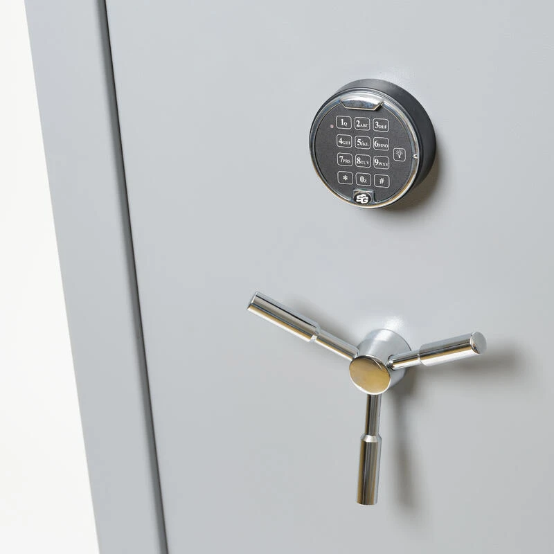 La serrure Ă©lectronique de cet armoire permet la saisie d’un code de 6 chiffres.